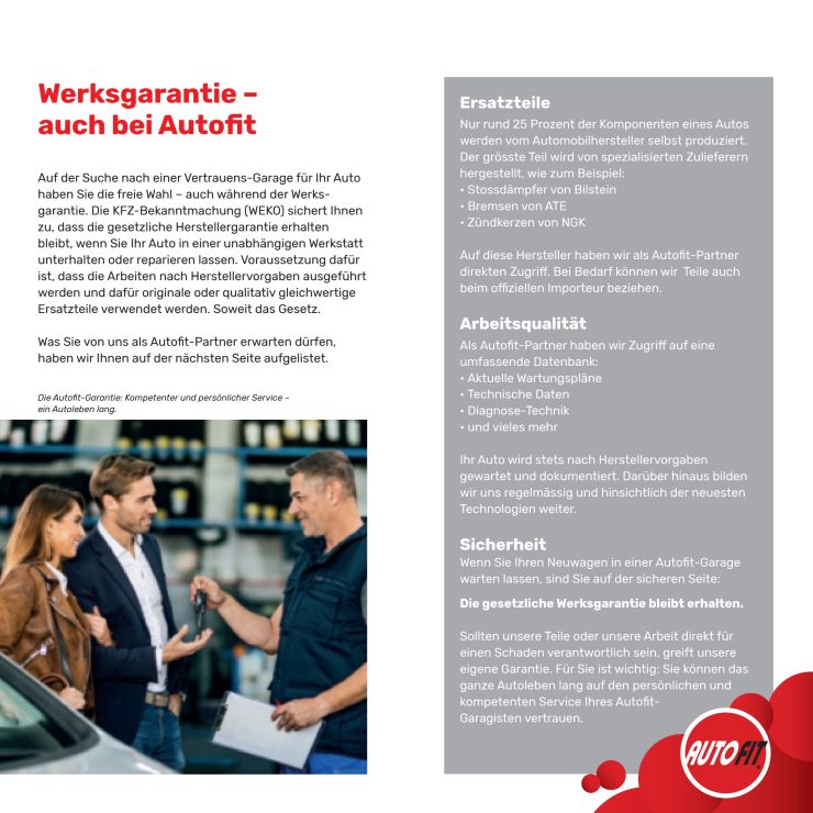 Die Garantie verfällt nicht, wenn ein Endverbraucher sein Kraftfahrzeug durch eine unabhängige Werkstatt während der Dauer der Garantie des Kraftfahrzeuglieferanten reparieren oder unterhalten lässt (einschließlich der Reparaturen aufgrund eines Unfalles)
